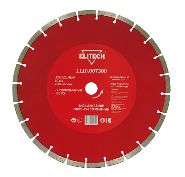 Алмазный круг 350х25,4 мм (арм бетон / сегментный), ELITECH 192001