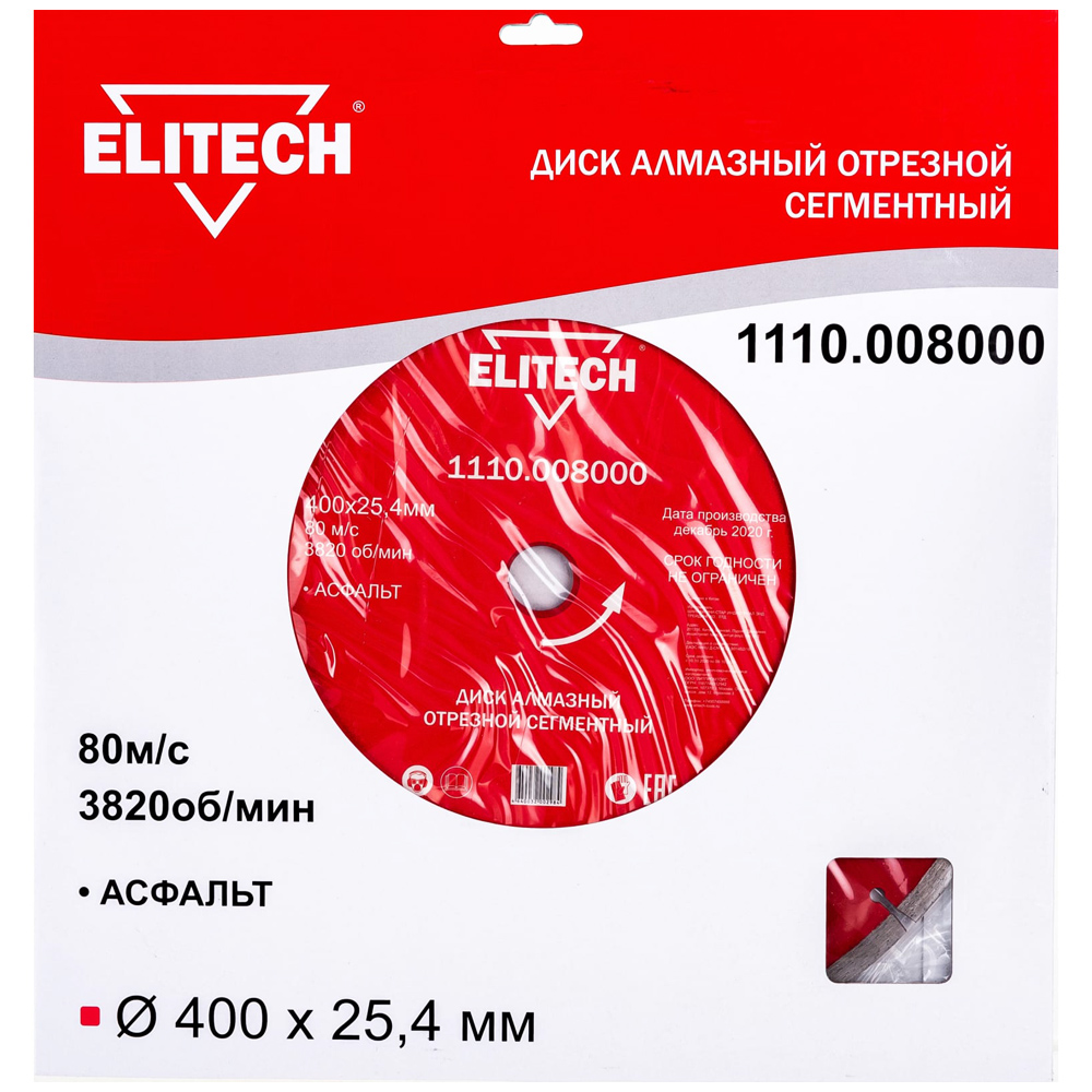 Алмазный круг 400х25,4 мм (асфальт / сегментный), ELITECH 192008