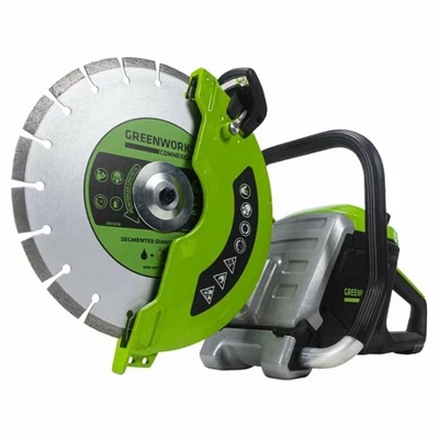 Бетонорез Greenworks работает от аккумуляторных батарей 82V Commercial.
