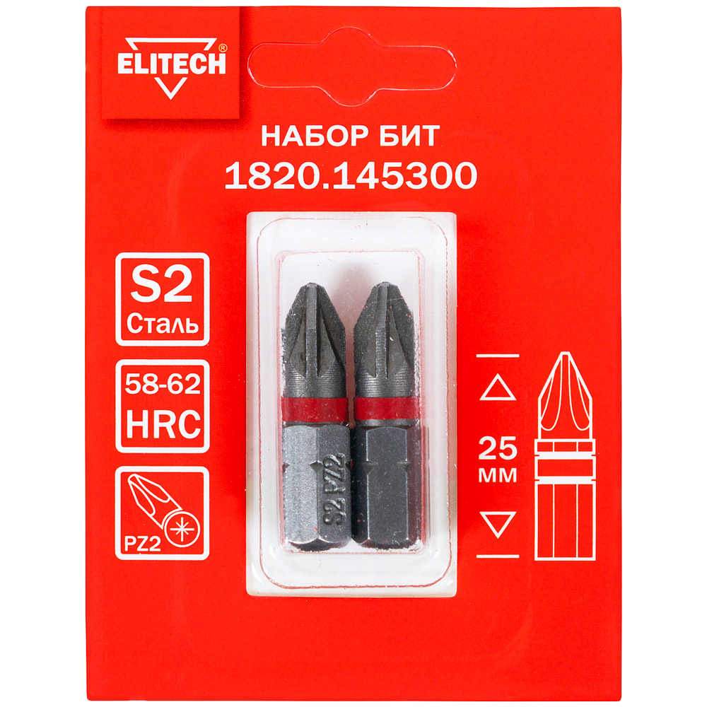 Бита PZ2 25 мм (2 шт) (1820.145300), ELITECH 204212