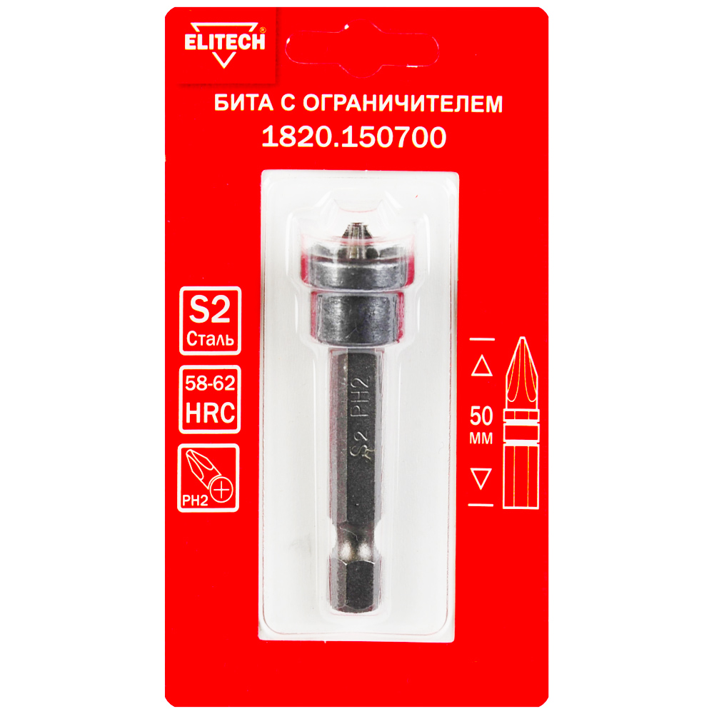 Бита с ограничителем для ГКЛ_PH2 50 мм (1 шт) (1820.150700), ELITECH 204266