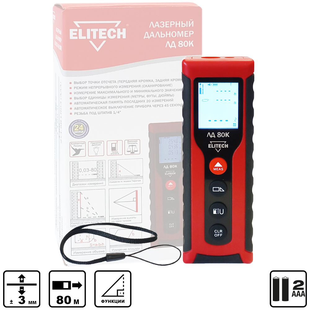 Дальномер лазерный ЛД 80К (80 м / ± 3 мм / 2хAAA), ELITECH 201466