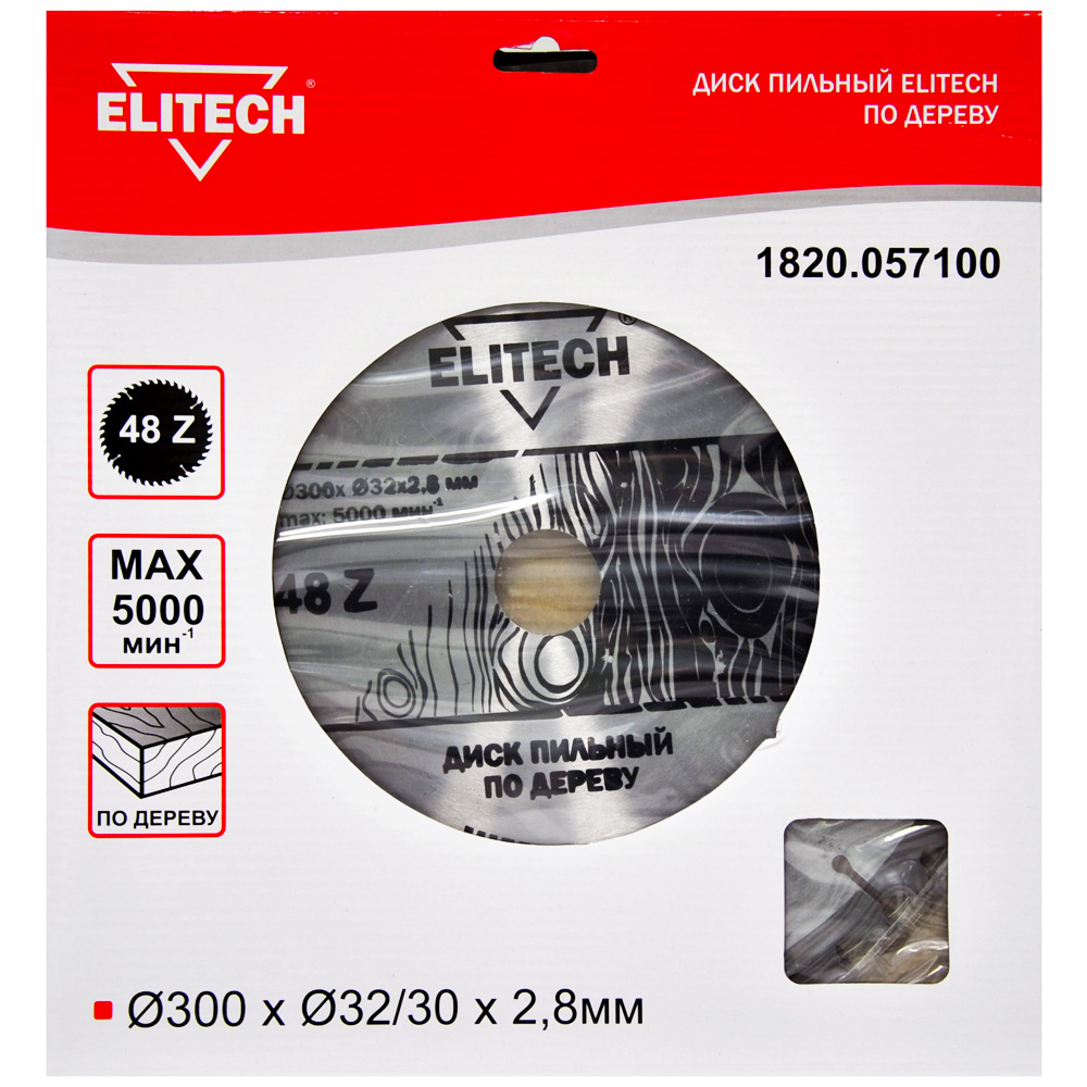 Диск пильный 300x2,8х32/30 мм Z48 по дереву (1820.057100), ELITECH 187798