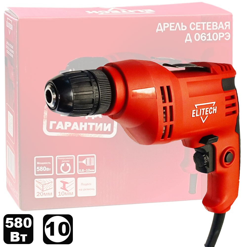 Дрель безударная Д 0610РЭ сетевая (580Вт / БЗП_10мм / Коробка) (E2201.028.00) 204496