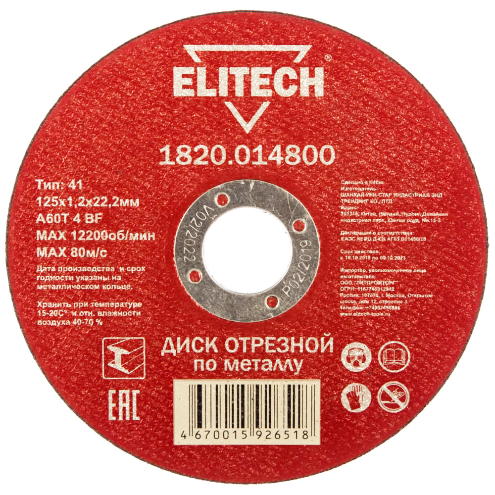 Круг отрезной 125х1,2х22,23 мм по металлу, ELITECH 184656