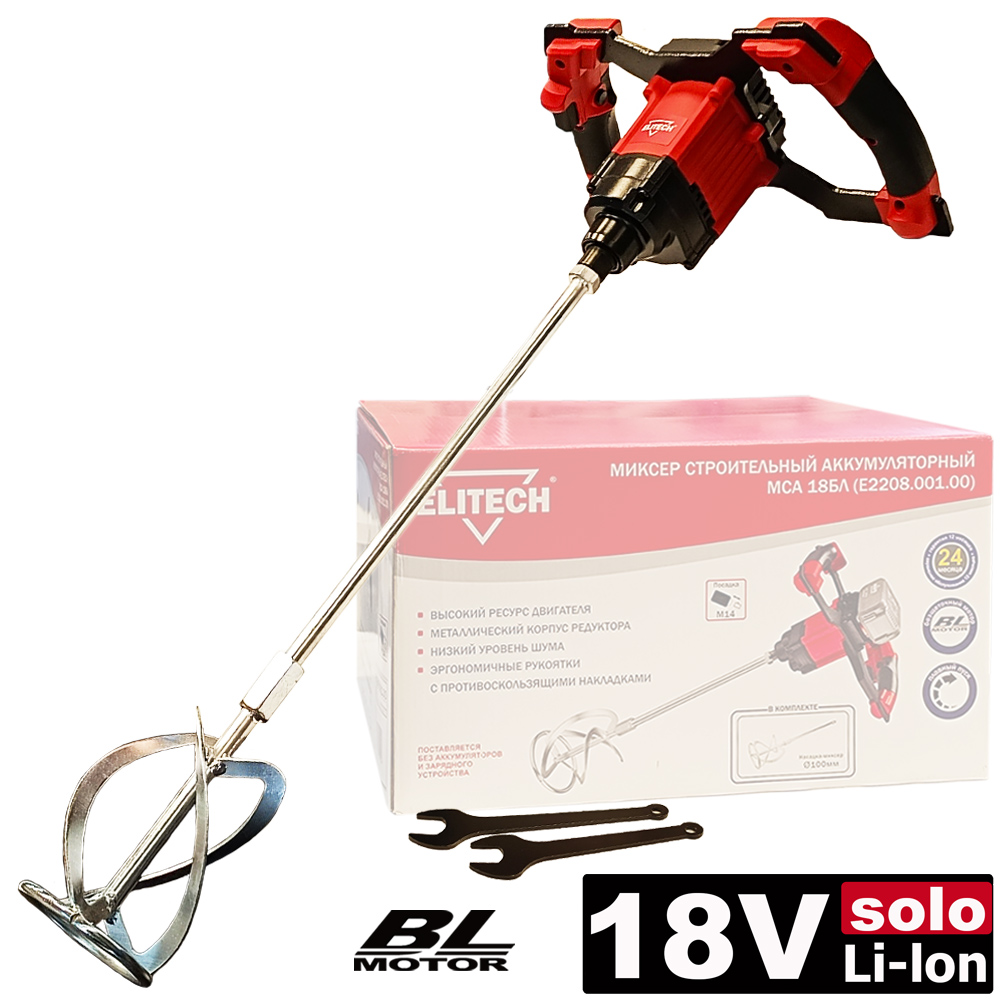 Миксер МСА 18БЛ аккумуляторный (18V / без АКБ и ЗУ / BL / Коробка), ELITECH 191592