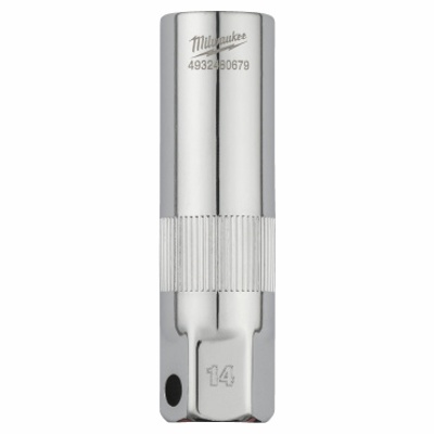 Головка торцевая свечная Milwaukee 4932480679 3/8"-14мм (длина: 68мм, резиновый фиксатор, штампованные размеры, отверстие под штифт, зона с насечками)