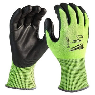 Перчатки защитные Milwaukee Hi-Vis Cut level 4/D 9/L (4932479928) (для резки, нарезании резьбы, зачистки проводов и труб, устойчивость к порезам)