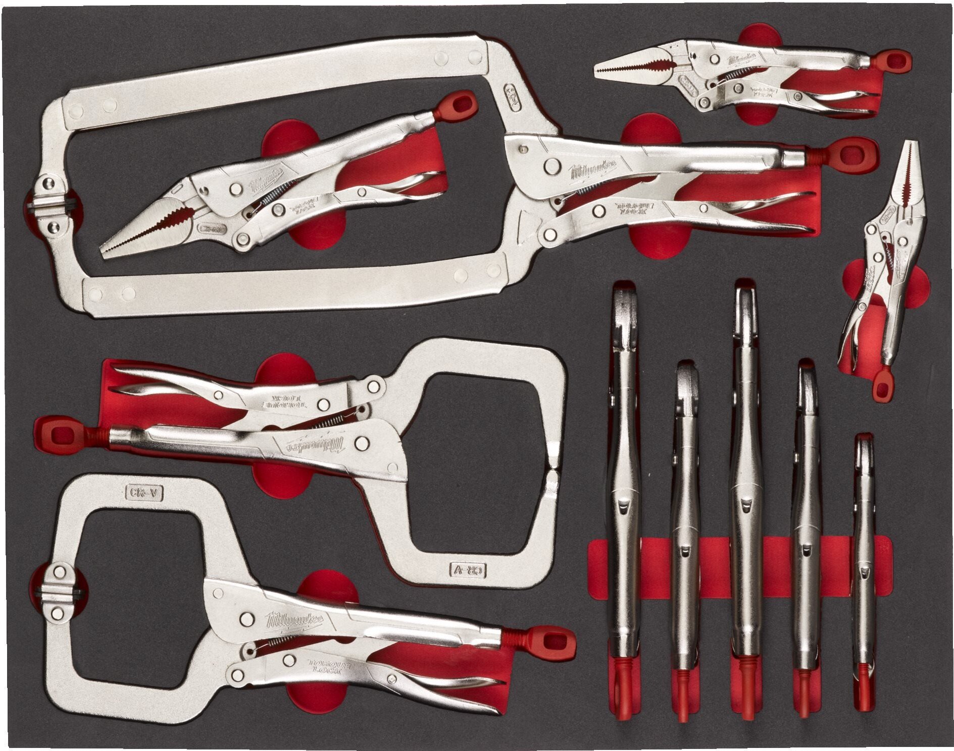 Набор зажимов губцевых Milwaukee Torque lock 11шт (4932493251) (закаленные губки, хромированный инструмент, конструкция рычага разблокировки: традиционный рычаг, клещи MAXBITE, в ложементе)