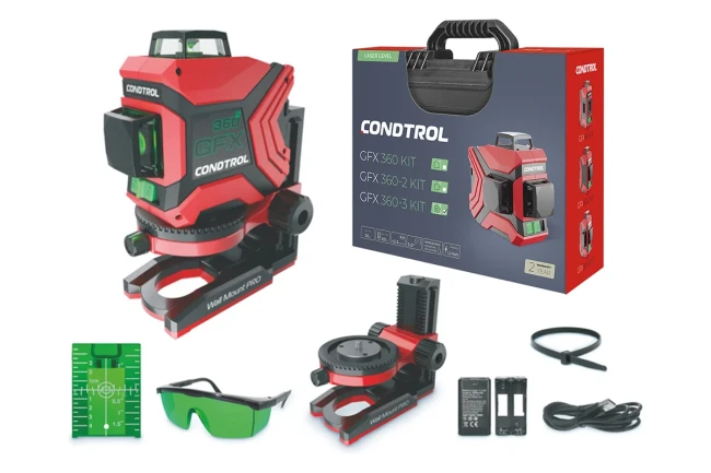 Нивелир лазерный GFX360-3 Kit (Зеленый / 30/60 м / 3 луча / ± 0.3 мм/м / Крепление / Кейс) CONDTROL 1-2-404