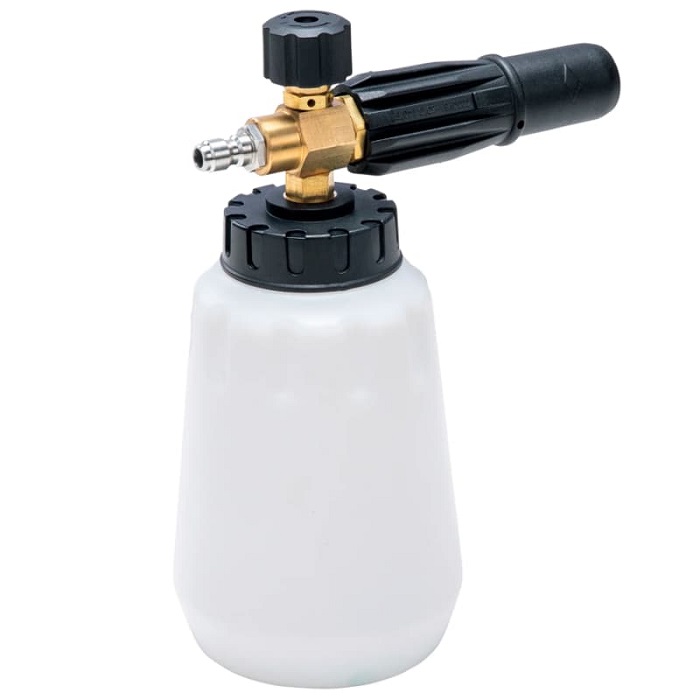 Пеногенератор Greenworks (пенная насадка) 250 бар с регулировкой подачи пены. (арт.5201907) Макс. расход воды 13,7 л/мин; Макс., температура воды 40 0С Подача пены регулируется вентилем; Универсальный разъем быстрого соединения 1/4 дюйма. Подходит для моек Greenworks: 5106207 Мойка высокого давления аккумуляторная Greenworks 60V GDPW60DP 250 бар [ https://www.mastergarden.by/catalog/greenworks/102372/?sphrase_id=209808 ] 5106507 Мойка высокого давления Greenworks GPWG4II 1800Вт 130бар [ https://www.mastergarden.by/catalog/greenworks/101672/?sphrase_id=209780 ] 5106607 Мойка высокого давления Greenworks GPWG5II 2000Вт 140бар [ https://www.mastergarden.by/catalog/greenworks/101837/?sphrase_id=209781 ] 5106707 Мойка высокого давления Greenworks GPW2000 2000Вт 140бар [ https://www.mastergarden.by/catalog/greenworks/101673/?sphrase_id=209782 ] 5105507 Мойка высокого давления Greenworks GHP2000 1800Вт 140 бар [ https://www.mastergarden.by/catalog/greenworks/101838/?sphrase_id=209783 ] 5106807 Мойка высокого давления Greenworks GPWG8II 2800Вт 160бар [ https://www.mastergarden.by/catalog/greenworks/101839/?sphrase_id=209784 ]