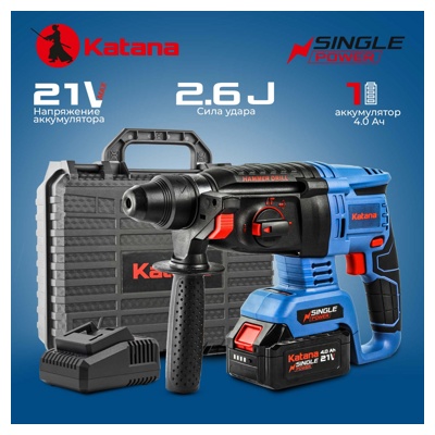 Перфоратор аккумуляторный KATANA RH5501 (21В,1*4Ач, бесщеточный.,2,6 Дж,3 режима,SDS+,3 сверла,кейс)