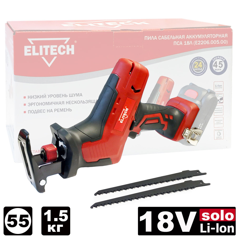 Сабельная пила ПСА 18Л аккумуляторная (18V / без АКБ и ЗУ / Коробка), ELITECH 198053