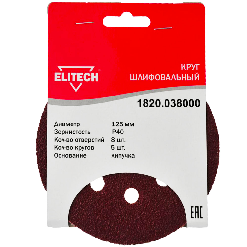 Шлифлист 125 мм 8 отв___К40 (5 шт), ELITECH 186639