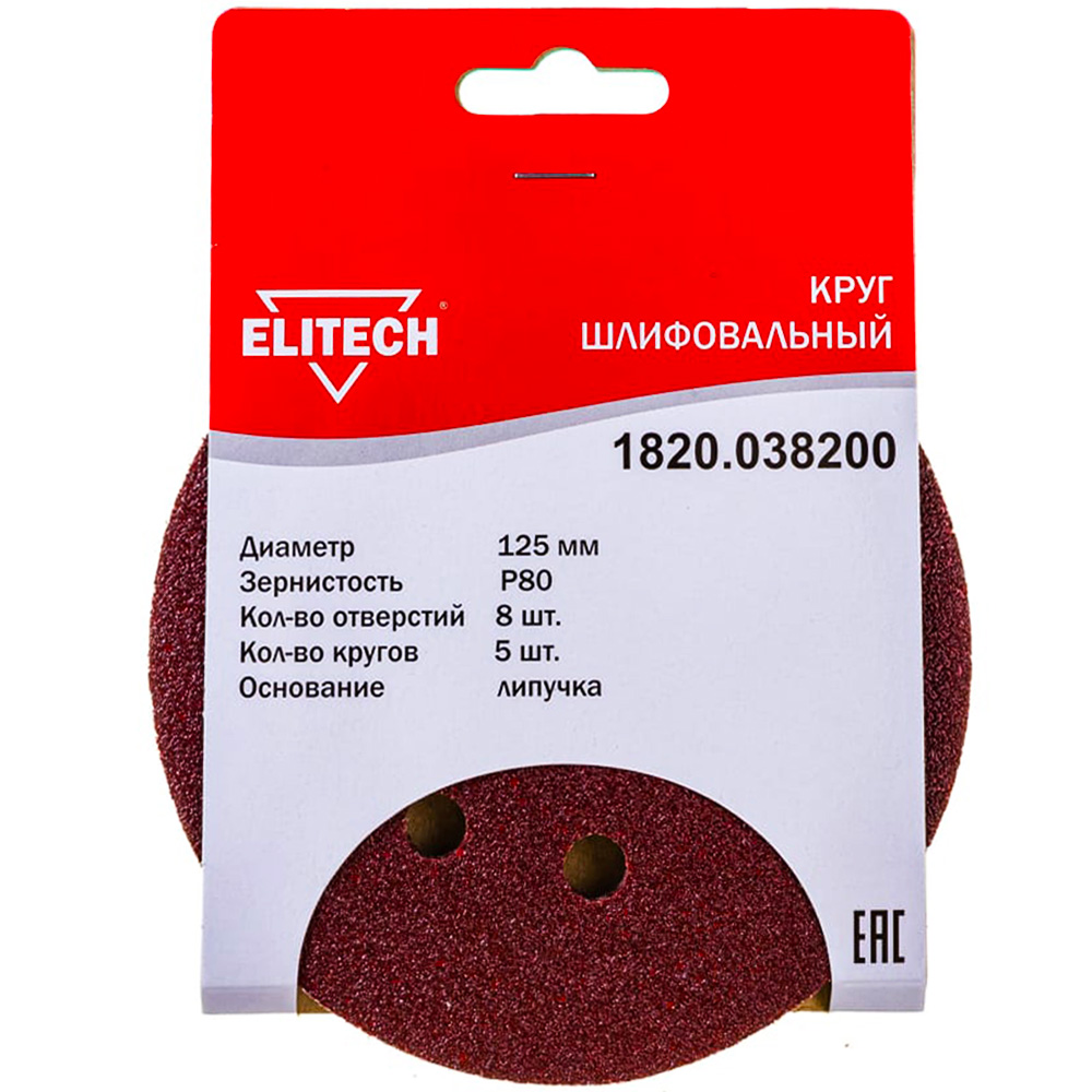 Шлифлист 125 мм 8 отв___К80 (5 шт), ELITECH 186641