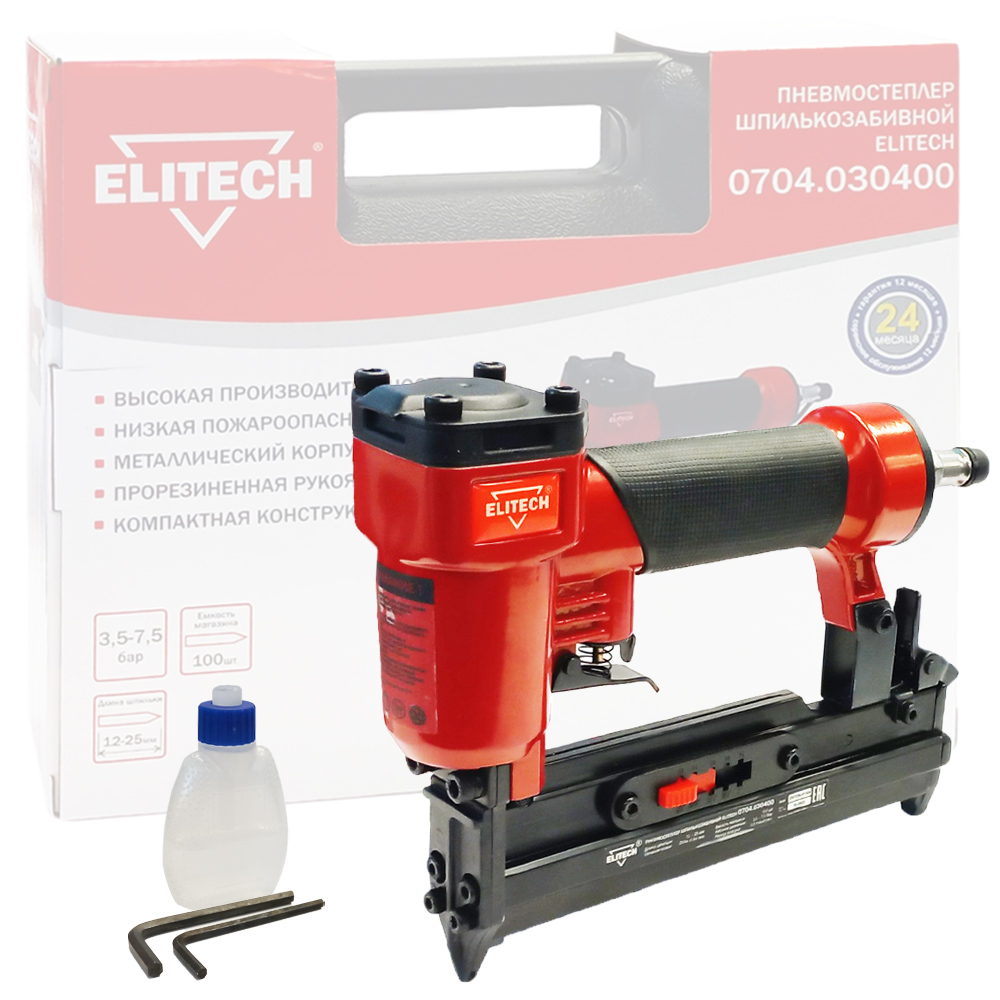 Степлер пневматический (7,5 атм / шпилька 25 мм 23 Ga / Кейс) (0704.030400), ELITECH 195029
