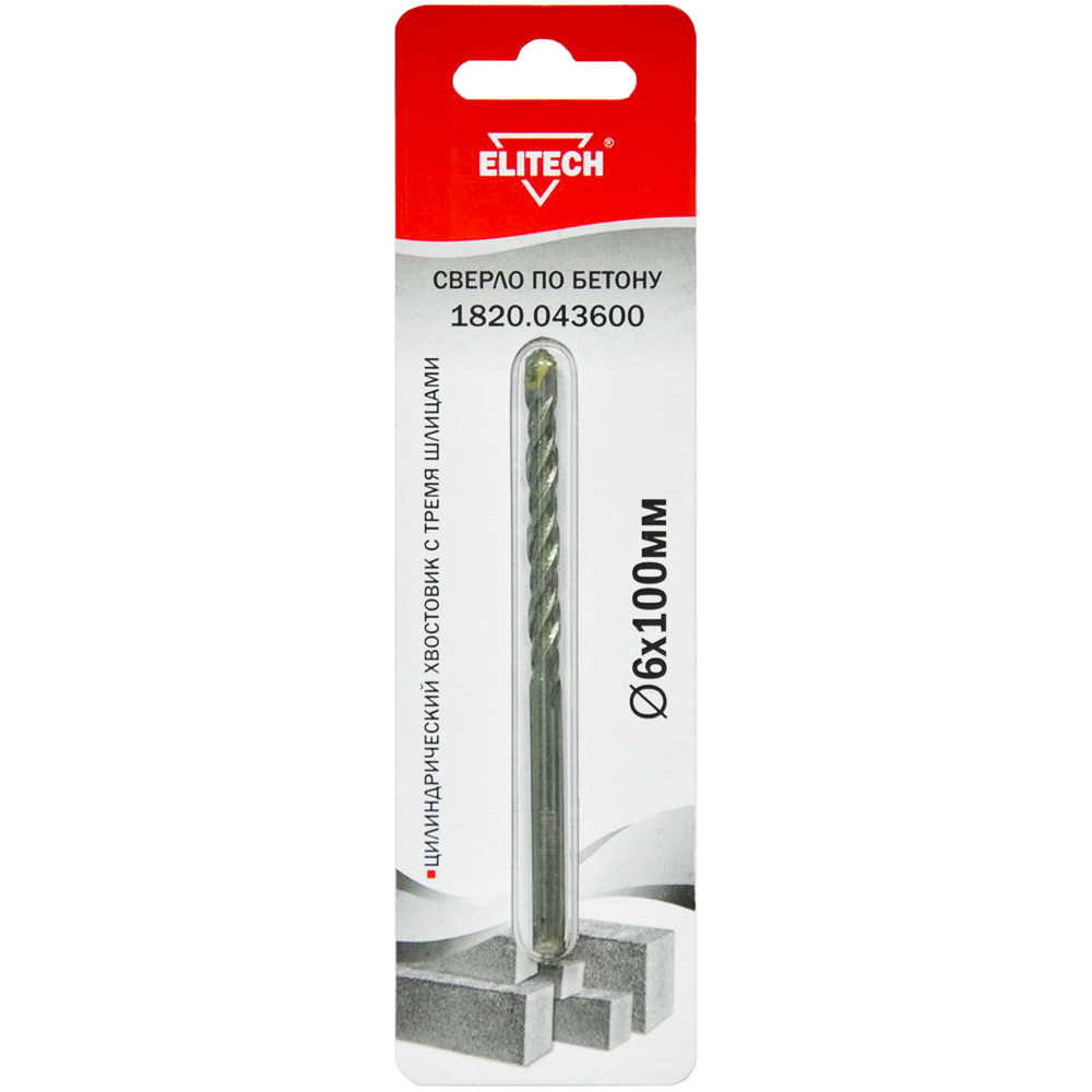 Сверло по бетону 6х100 мм (3 шлиц. хв.), ELITECH 187548