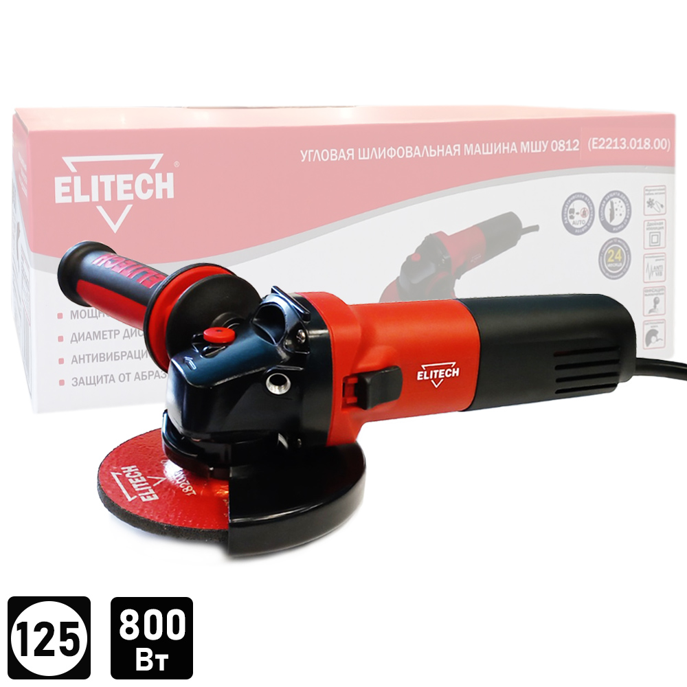 Шлифмашина угловая МШУ 0812 (800 Вт / 125 мм / Коробка), ELITECH 200320