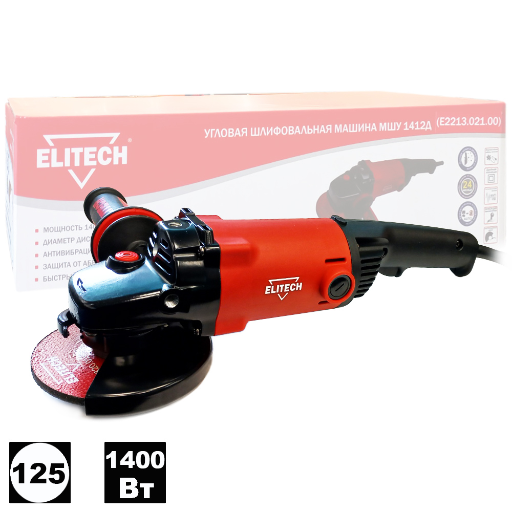 Углошлифмашина МШУ 1412Д сетевая (1400 Вт / 125 мм / Коробка), ELITECH 200323